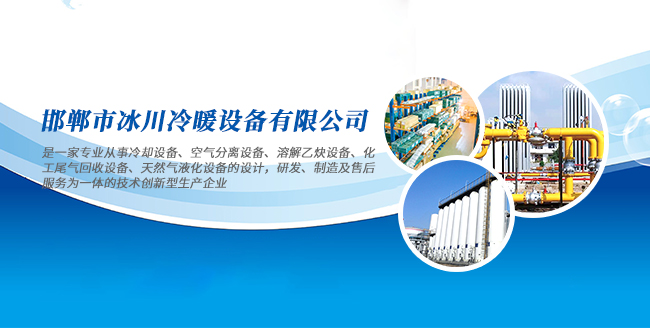 邯鄲市冰川冷暖設備有限公司成立于2008年,坐落于歷史名城邯鄲,是一家專業(yè)從事冷卻設備、空氣分離設備、溶解乙炔設備、化工尾氣回收設備、天然氣液化設備的設計,研發(fā)、制造及售后服務為一體的生產(chǎn)企業(yè)。
